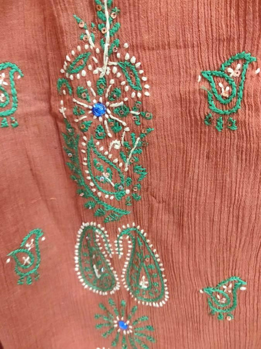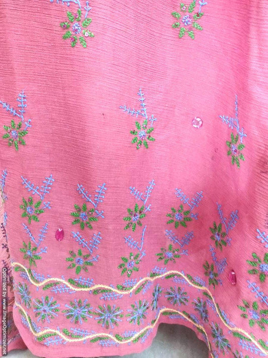 Designer Chikankari Crinkle Cotton Lakhnavi Embroidery Long Skirt ACS1