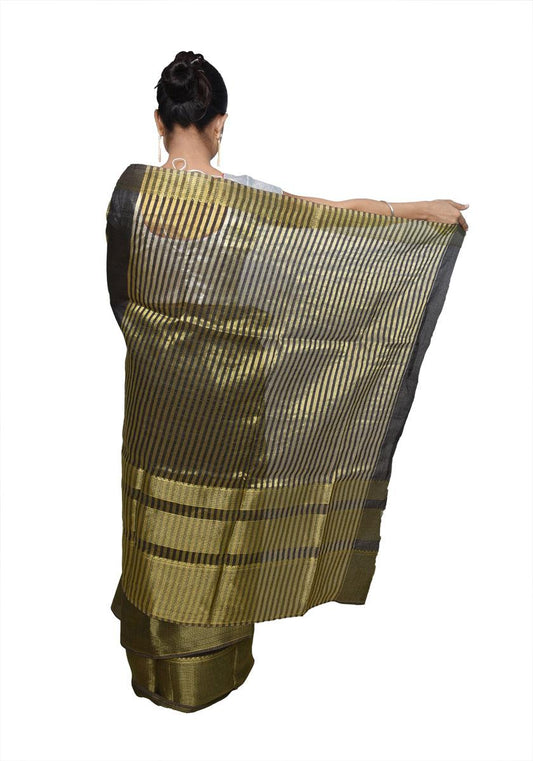 Black Cotton Silk Zari Border Saree Lacey