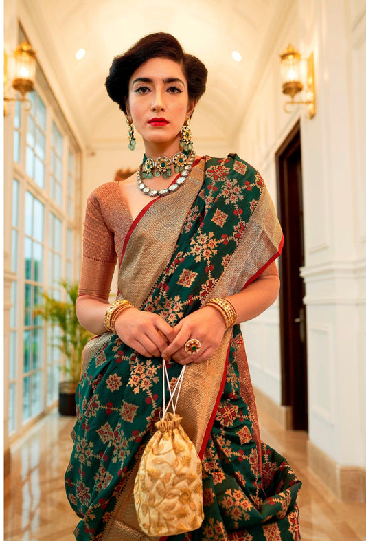 Designer Green Patola Weave Heavy Look Silk Saree KM02