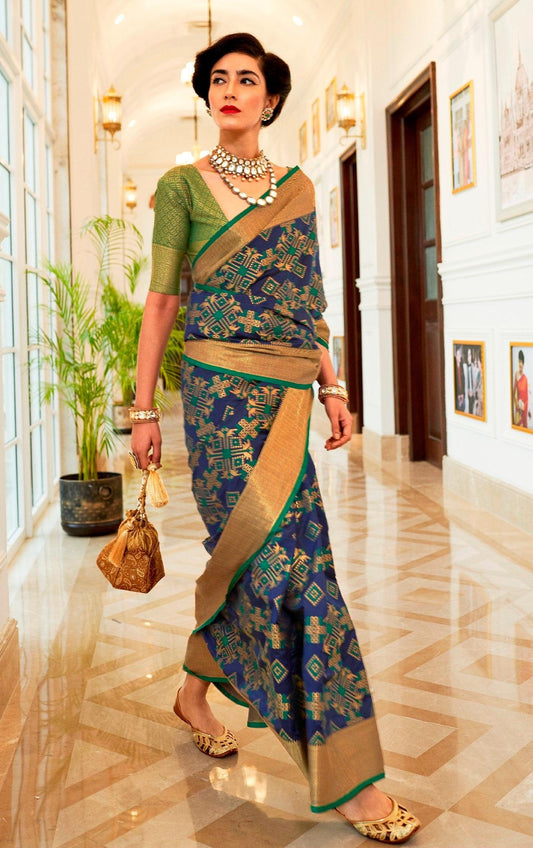 Designer Navy Blue Patola Weave Heavy Look Silk Saree KM06