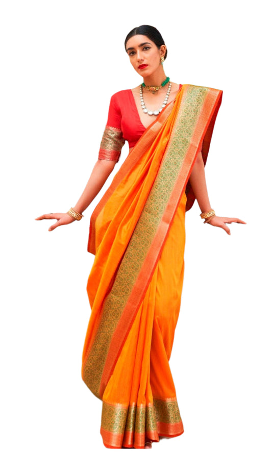 Designer Yellowish Orange Silk Saree KN04