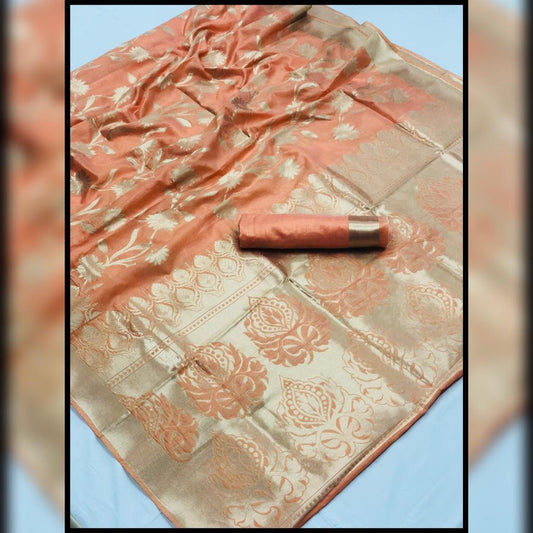 Designer Light Orange Weaven Silk Saree KL08