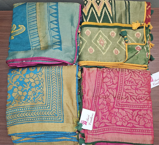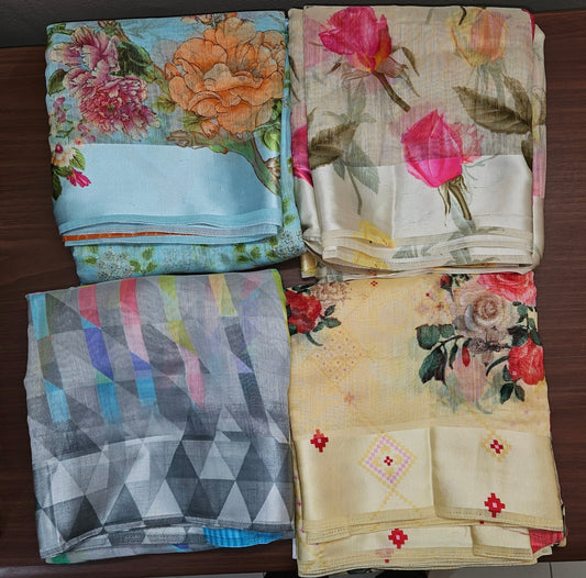 Wholesale Set of 4 Soft Linen Cotton Printed Sarees – Floral & Trendy Designer Collection SH