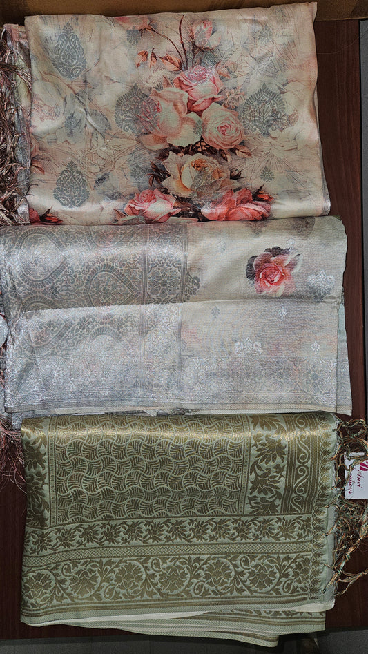 Set of 3 Banarasi Semi Silk Sarees with All-Over Digital Floral Print & Rich Zari Weave | Wholesale Combo