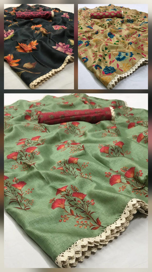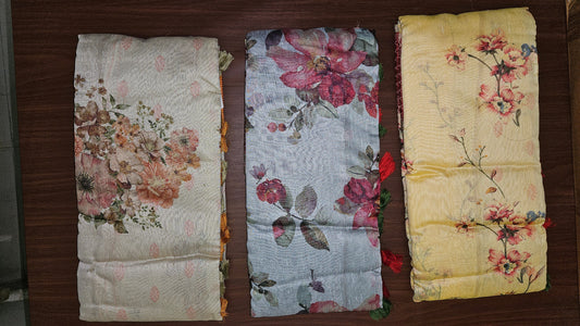 Wholesale Set of 3 Soft Linen Cotton Sarees with Digital Print & Weaving Border PC
