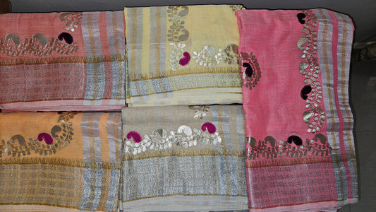 Wholesale Set of 5 Soft Linen Cotton Sarees with Gota Patti work Elegant Weaving Border