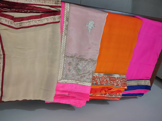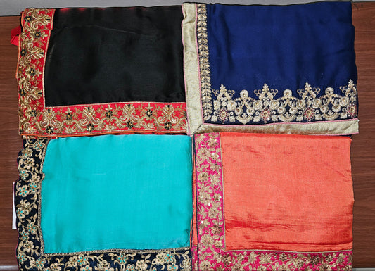 Set of 3 Designer Satin Georgette Sarees with Embroidered Borders & Heavy Work Blouse | Wholesale Party Wear Sarees Combo