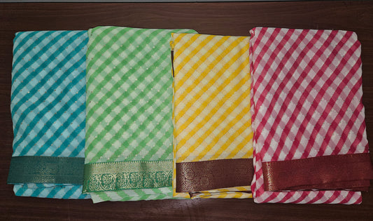 Wholesale Combo Set of 4 Lehariya Printed Georgette Sarees with Rich Brocade Borders | Light Weight Daily Wear & Festive Collection