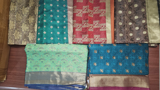 Wholesale Combo Set of 5 Chanderi Silk Sarees with Zari Border & Blouse