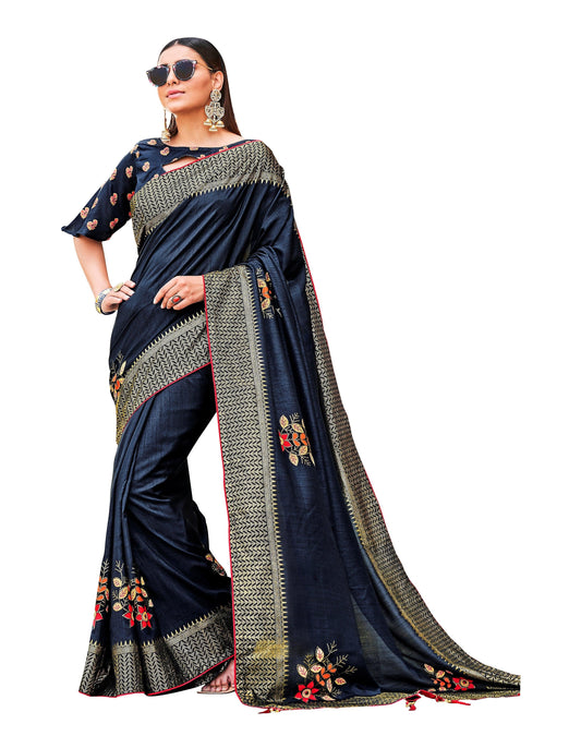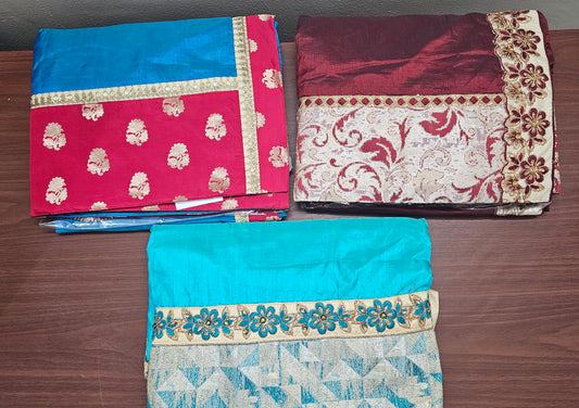 Set of 3 Dupion Silk Sarees with Embroidered Work Border & Dual Blouse Options | Wholesale Combo for Festive & Party Wear