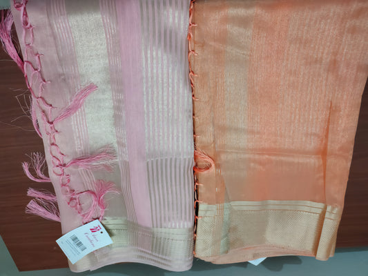 Wholesale Set of 2 Tissue Linen Sarees with Weaving Border & Matching Blouses SIM