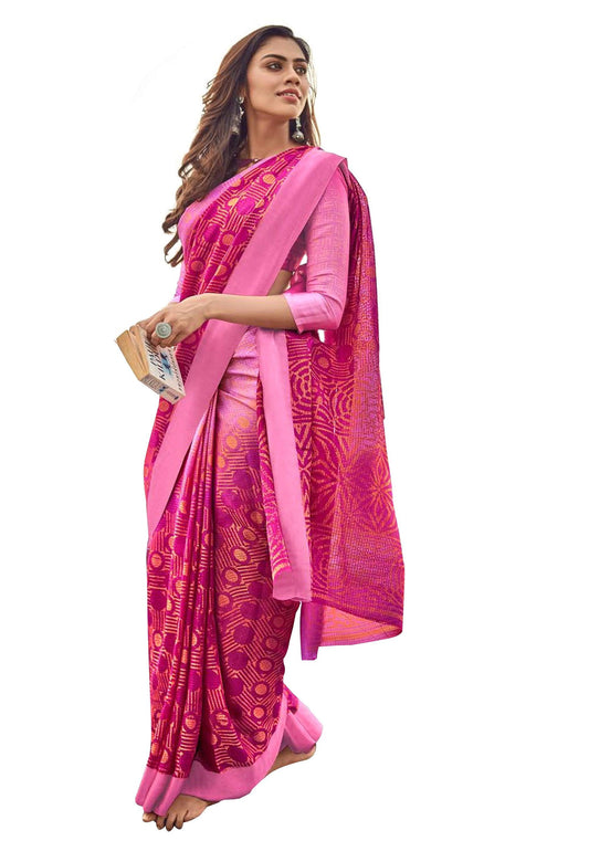 Wholesale Combo Set of 4 Designer Brasso Silk Printed Sarees with Exclusive Embroidered Blouse | Soft Weaven Fabric | Festive & Daily Wear