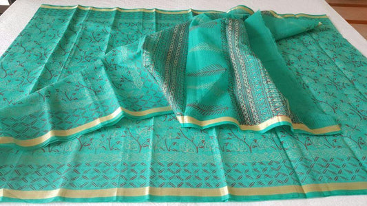 Designer Green Gold Border Kota Cotton Printed Saree KCS81