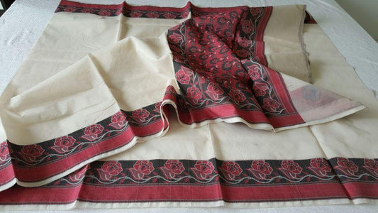Designer Off white Floral Printed Linen Silk Saree ND03