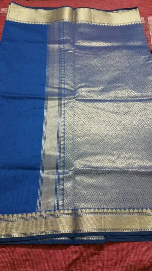 Blue Banarasi Cotton Silk Saree with Running Blouse Fabric BS18