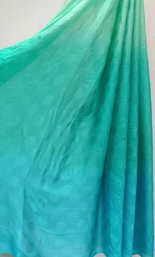 Daesigner Turquoise Shaded Jequard Chiffon Fabric Pre Cut 6 Meters FAB164