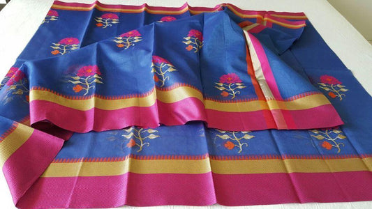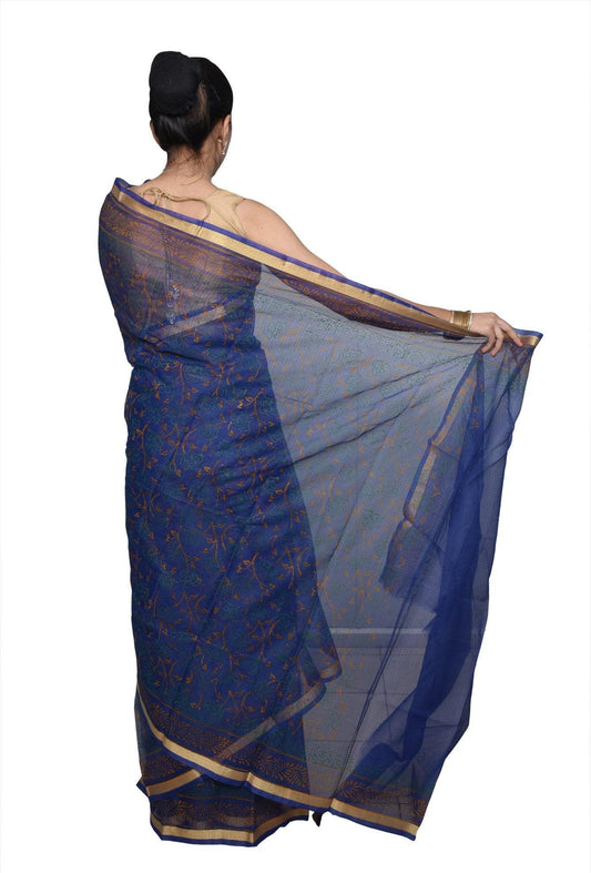 Designer Blue Kota Cotton Embroidered Saree KCS100