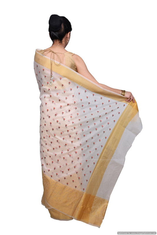 Designer Cream Kota Cotton Embroidered Saree KCS99