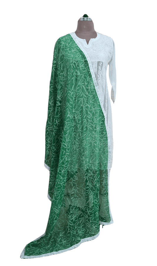 Designer Green Chikankari Tepchi Work Chiffon Dupatta DP56