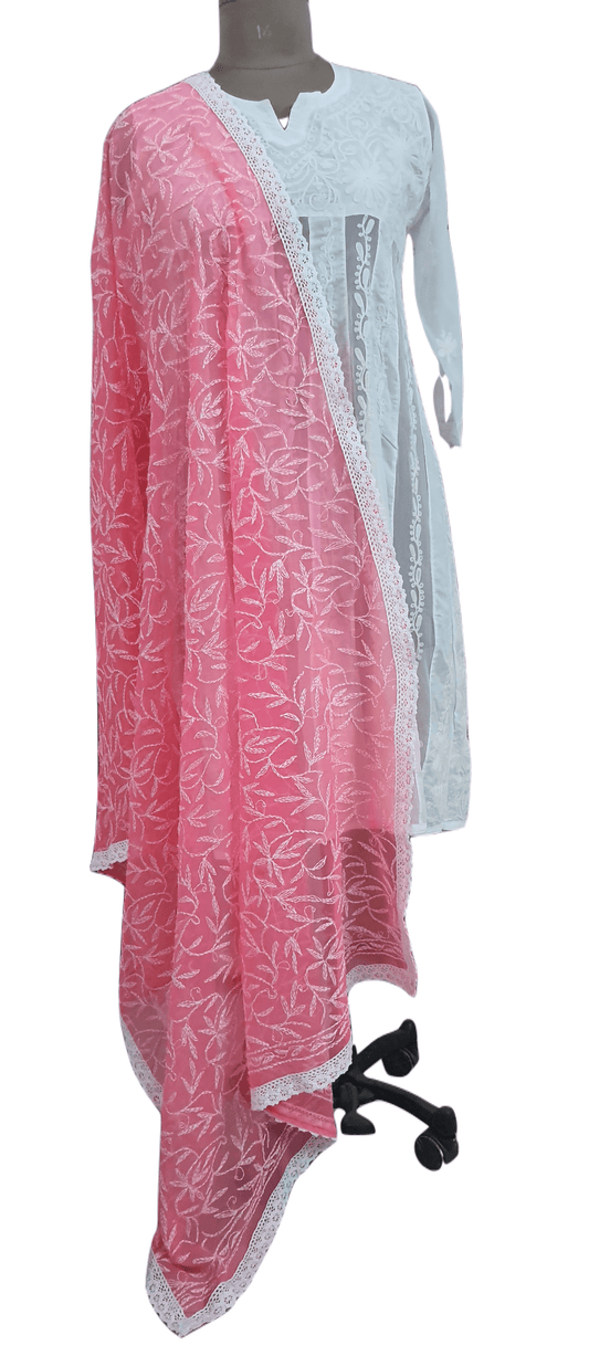 Designer Pink Chikankari Tepchi Work Chiffon Dupatta DP57