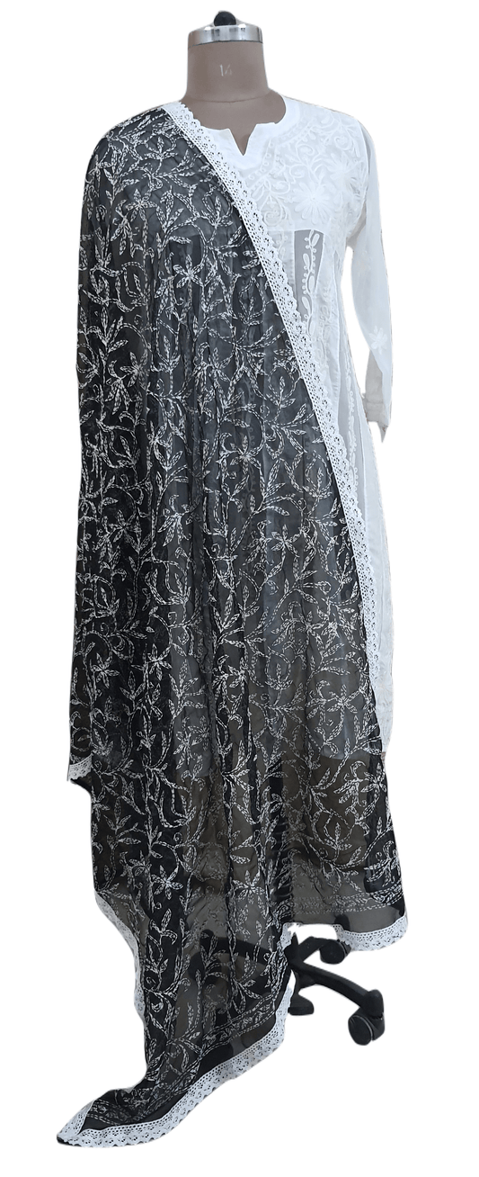 Designer Black Chikankari Tepchi Work Chiffon Dupatta DP58