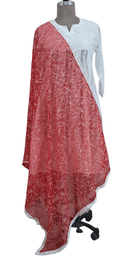 Designer Red Chikankari Tepchi Work Chiffon Dupatta DP59