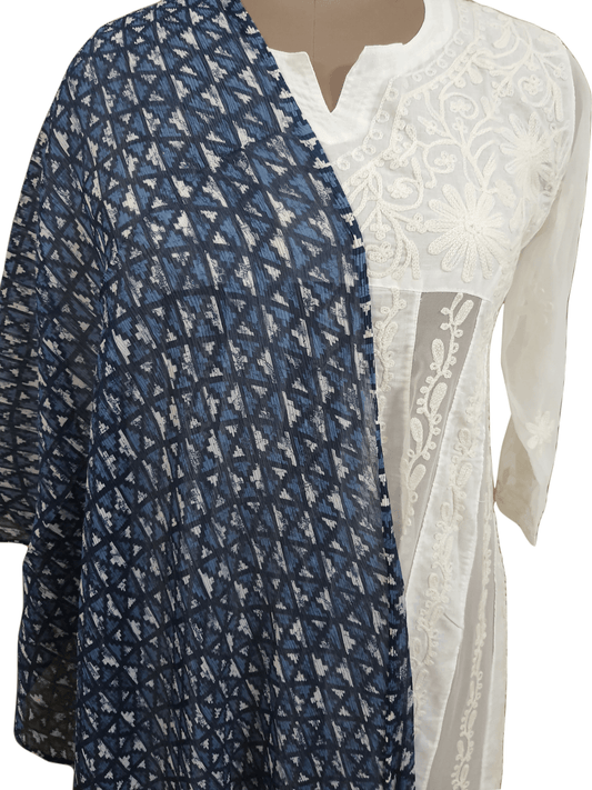 Designer Off White Chikankari Tepchi Work Chiffon Dupatta DP70