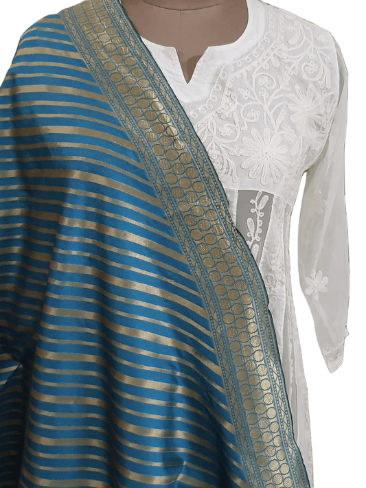 Dupion Art Silk Turquoise Zari Weaven Banarasi Dupatta DP68