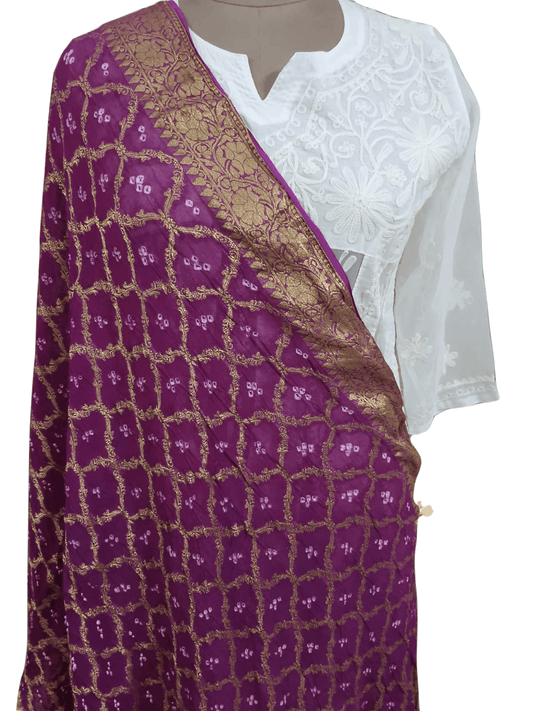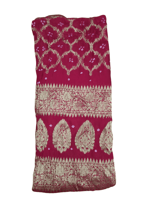Magenta Pink Georgette Zari Weave Bandhani Dupatta DP82