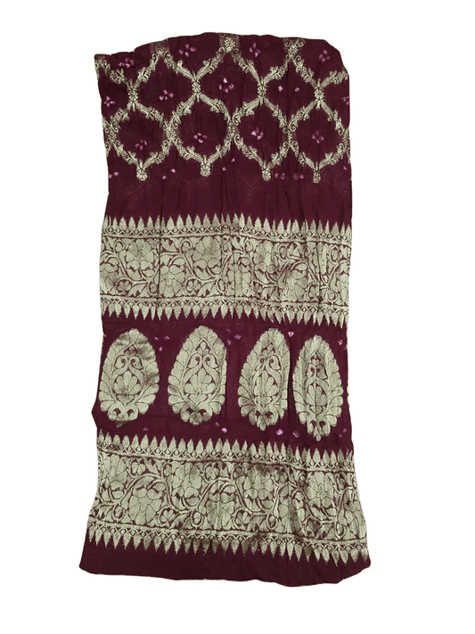 Maroon Banarasi Weaven Georgette Gharchola Bandhani Dupatta DP73