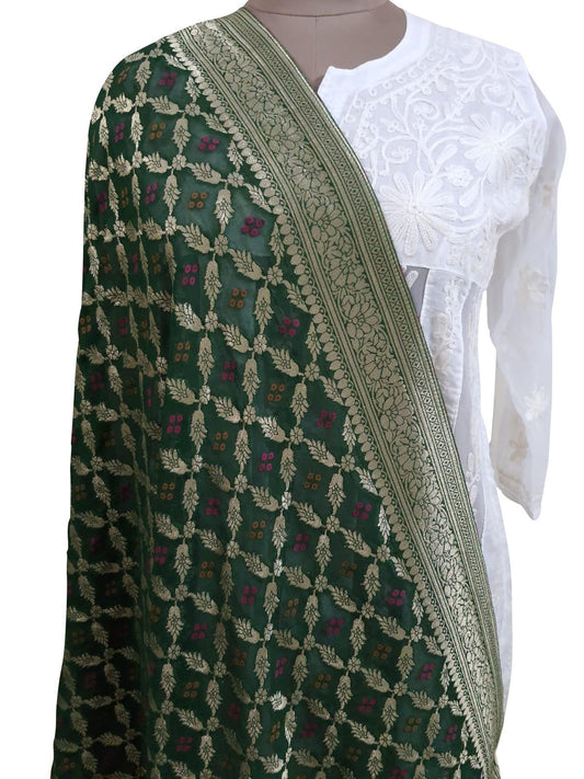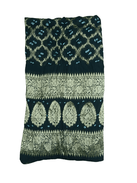 Bottle Green Georgette Zari Weave Bandhani Dupatta DP83