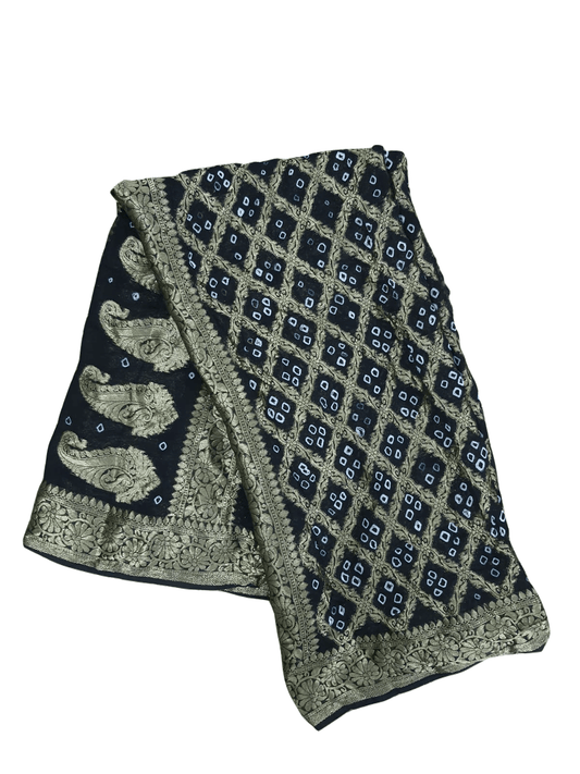 Black Banarasi Weaven Georgette Gharchola Bandhani Dupatta DP77