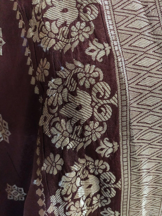 Designer Brown Dupion Silk Zari Weaven Banarasi Dupatta DP19