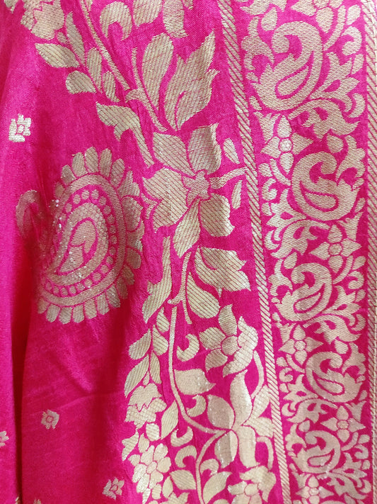 Designer Pink Dupion Silk Zari Weaven Banarasi Dupatta DP21