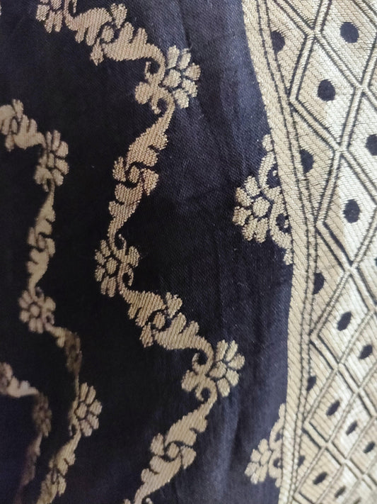 Designer Black Dupion Silk Zari Weaven Banarasi Dupatta DP23