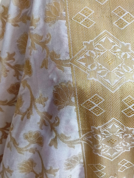 Designer White Dupion Silk Weaven Banarasi Dupatta DP26