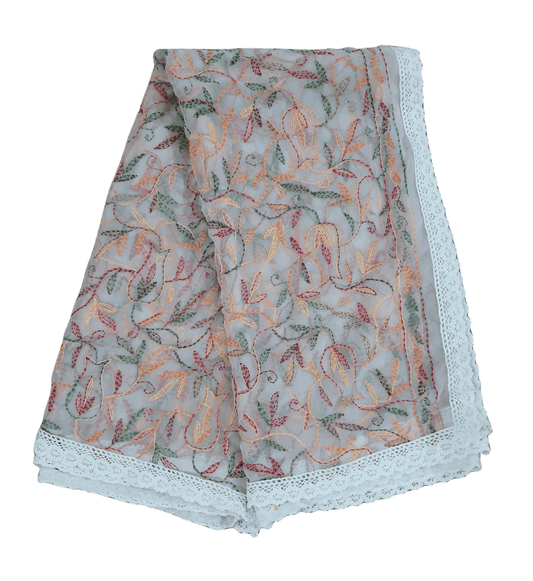 Designer Multi White Chikankari Tepchi Work Chiffon Dupatta DP55