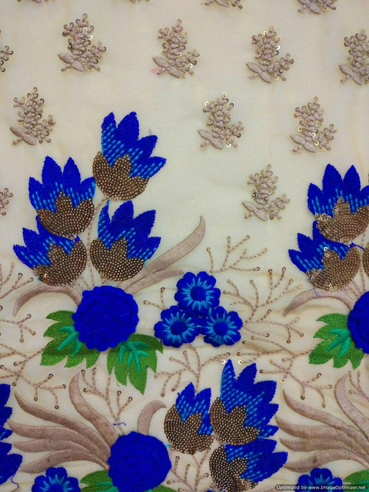 Designer Georgette Beige Green Blue Sequin Embroidered Fabric Pre Cut 3 Meter FAB35