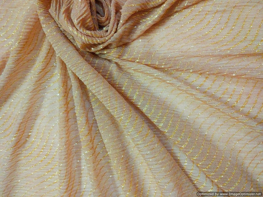 Designer Net Peach Resham embroidered Zaal Fabric Pre Cut 3 Meter FAB058