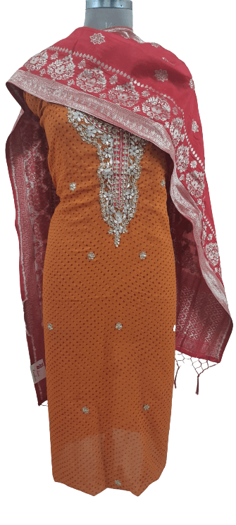 Jaipuri Mothra Georgette Gotta Patti work Orange Kurti Kurta Fabric GP72