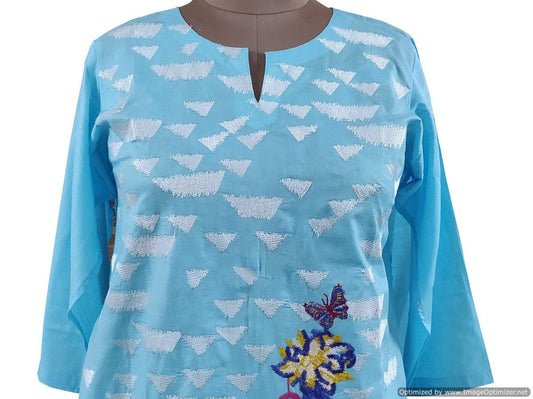 Semi Stitched Light Blue Pakistani Embroidered Kurti Kurta PK09