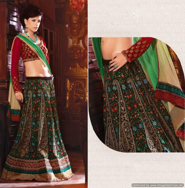 Green Blue Net Silk Embroidered Lehenga Saree Z3316
