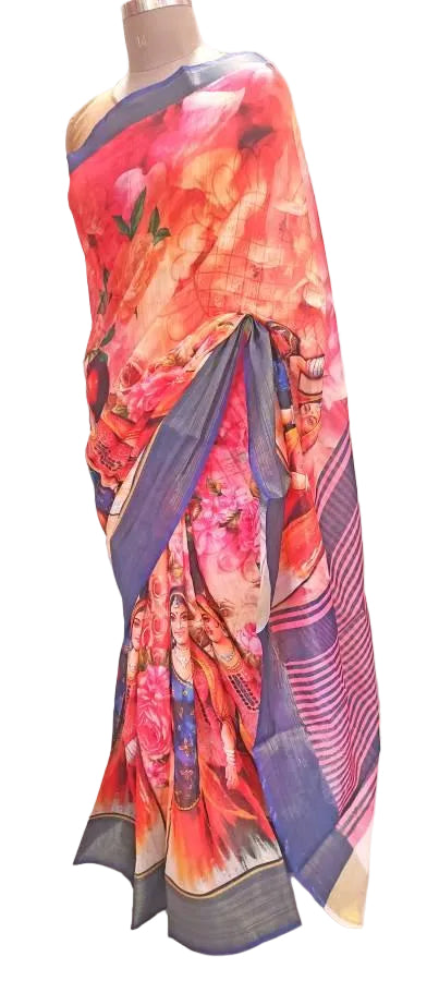 Designer Multi Digital Printed Linen Silk Saree ND04