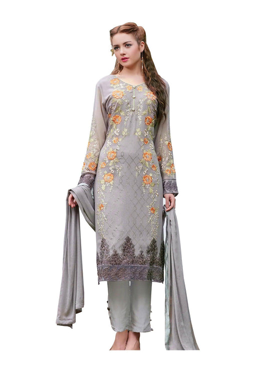 Designer Semi Stitched Grey Georgette Dress Material SC2003