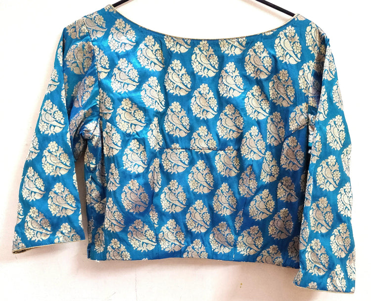 Designer Firozi Blue Peacock Motif Brocade Ready to Wear Blouse ACP13