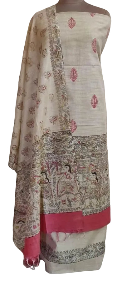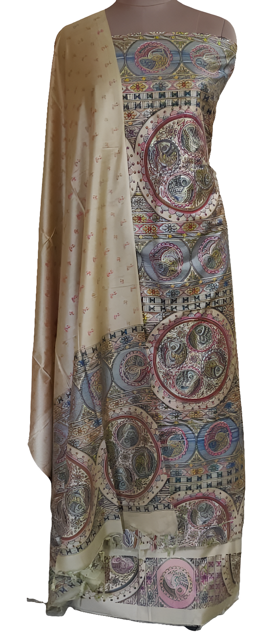 Deep Beige Madhubani Print Art Silk Suit MD26