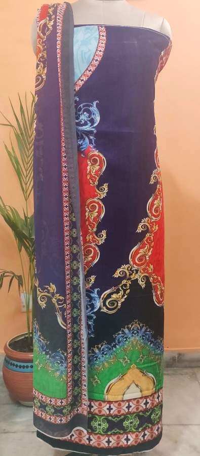 Black Fine Spun cotton with Shawl Dress Material EL09C