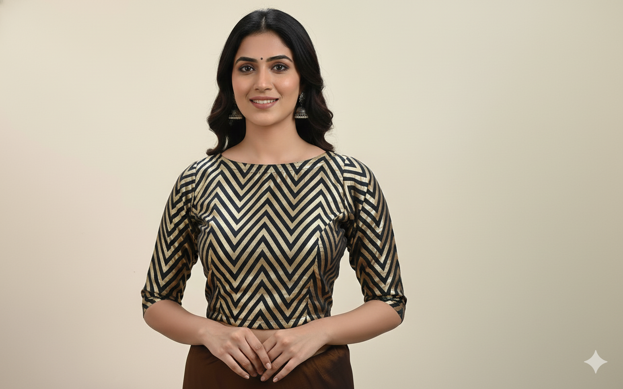 Designer Black Brocade Embroidered Ready to Wear Blouse Crop Top ACP07