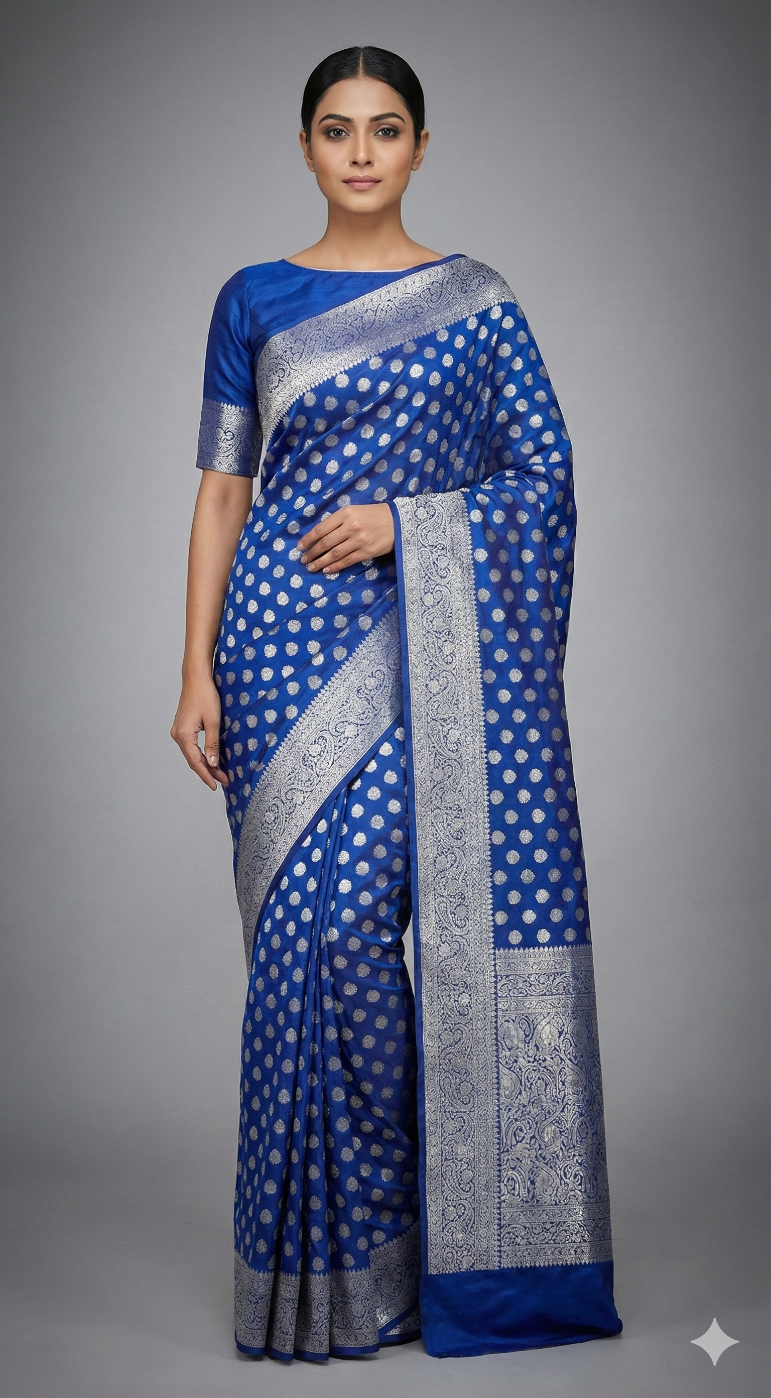 Royal Blue Khaddi Semi Georgette Banarasi Saree
