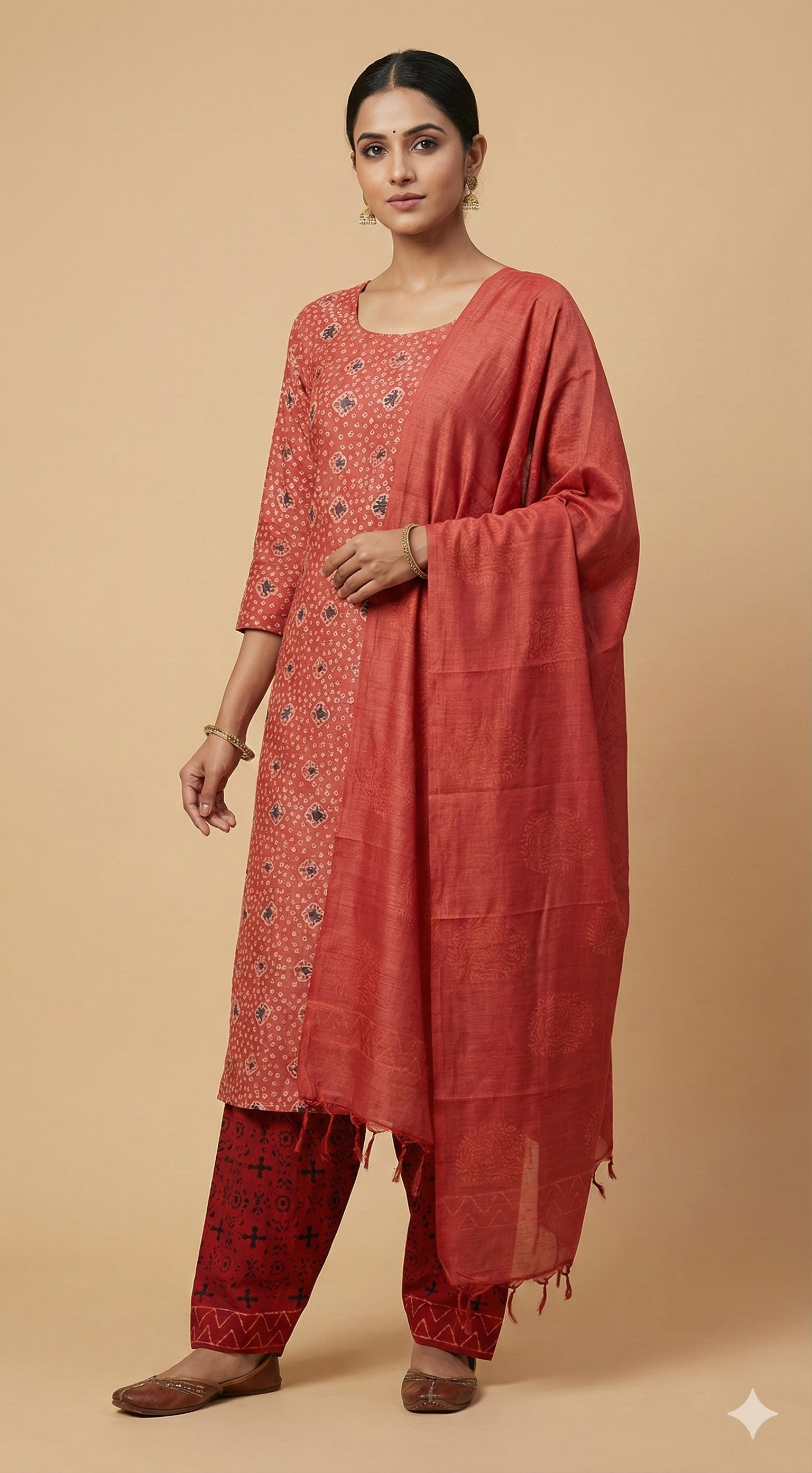 Rust Orange Khadi Cotton Silk Block Printed Suit